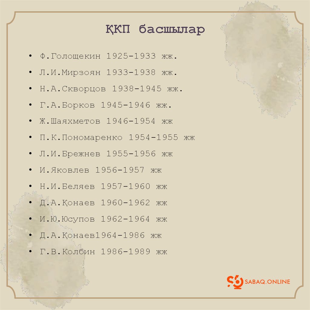 ҚКП басшылар• Ф.Голощекин 1925-1933 жж.