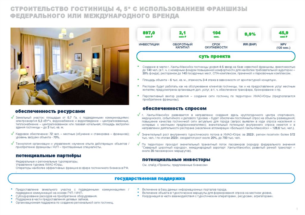 Создание в черте г. Ханты-Мансийск гостиницы уровня 4-5 звезд на базе известной франшизы, вместимостью