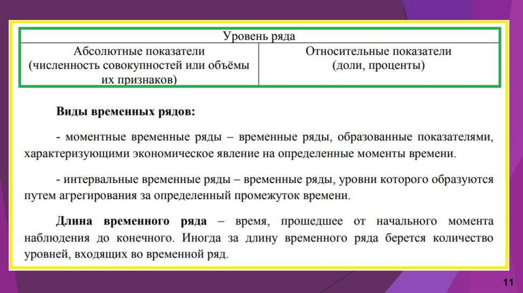 характеристики временных рядов