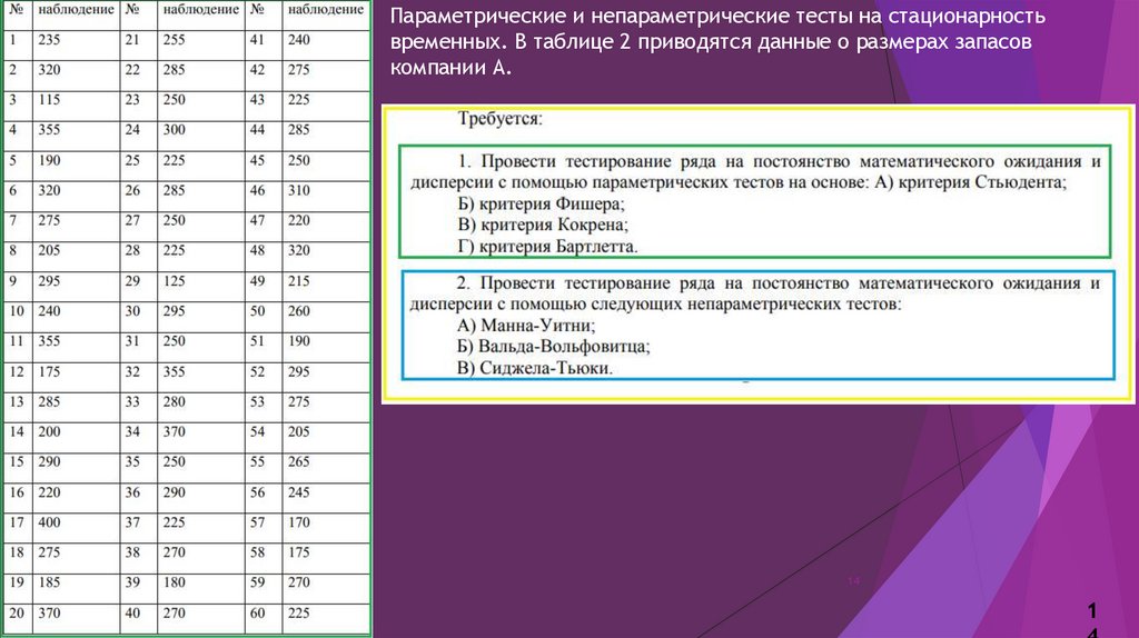 Параметрические и непараметрические тесты на стационарностьвременных. В таблице 2 приводятся данные о размерах запасов