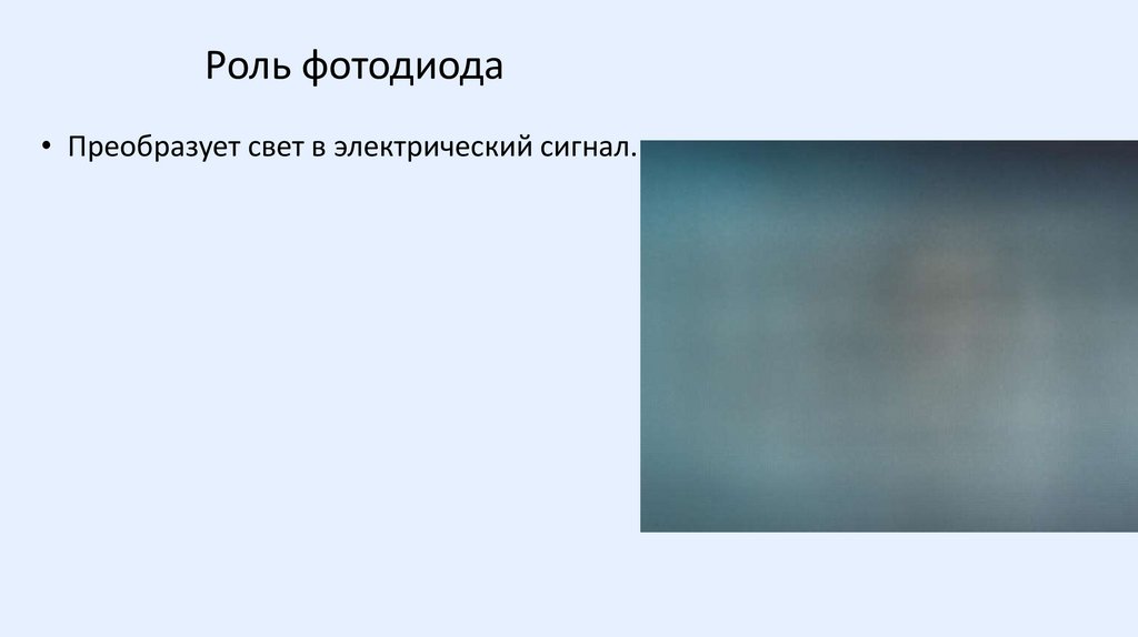 Роль фотодиода• Преобразует свет в электрический сигнал.