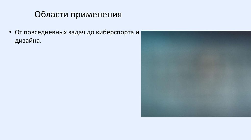 Области применения• От повседневных задач до киберспорта и