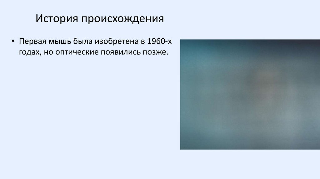 История происхождения• Первая мышь была изобретена в 1960-х