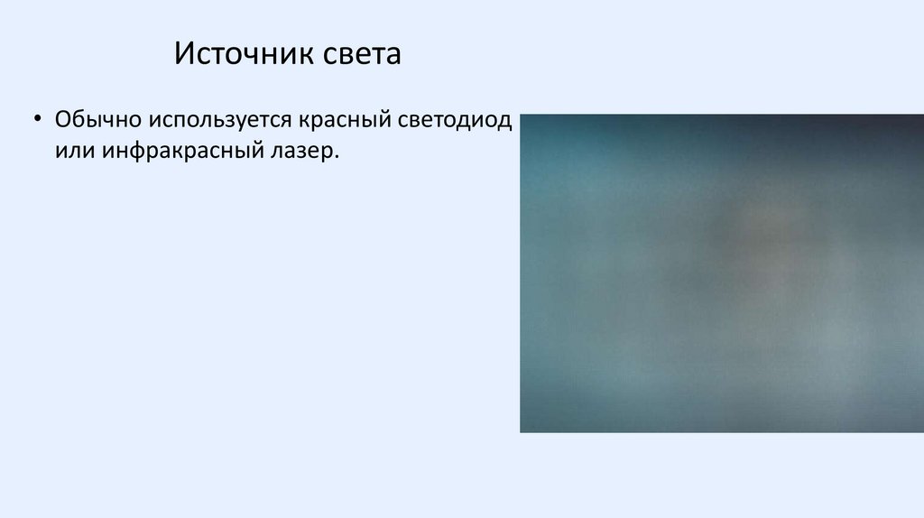 Источник света• Обычно используется красный светодиод