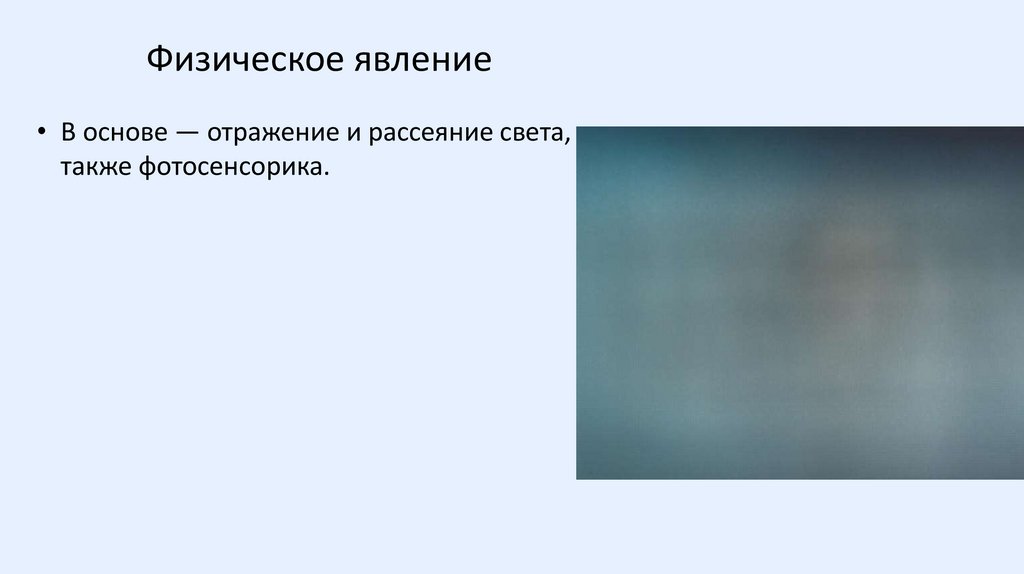 Физическое явление• В основе — отражение и рассеяние света, а