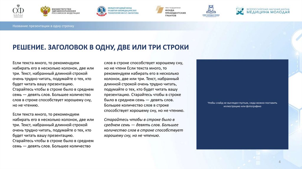 тех, кто будет читать вашу презентацию. Старайтесь чтобы в строке было
