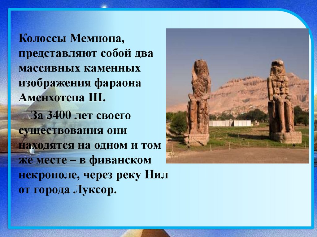1. Древний Египет Колоссы Мемнона