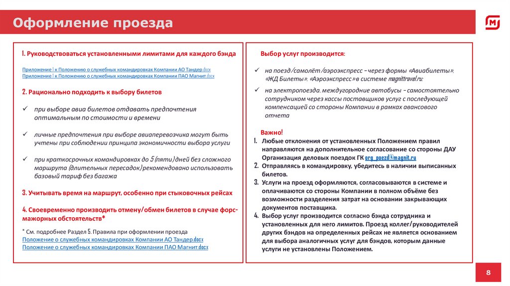 Оформление и согласование всех командировок проводится в системе magnittravel.ru