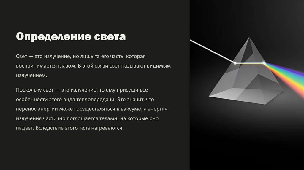 Определение светаСвет — это излучение, но лишь та его часть, которая