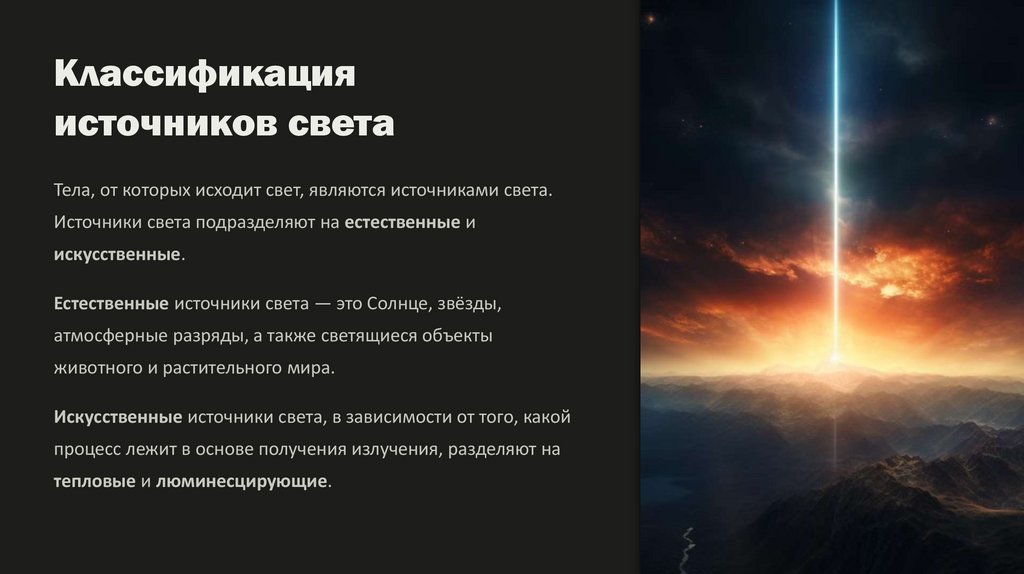 Эти предметы мы видим только тогда, когда они освещены. Излучение, идущее от источника света,