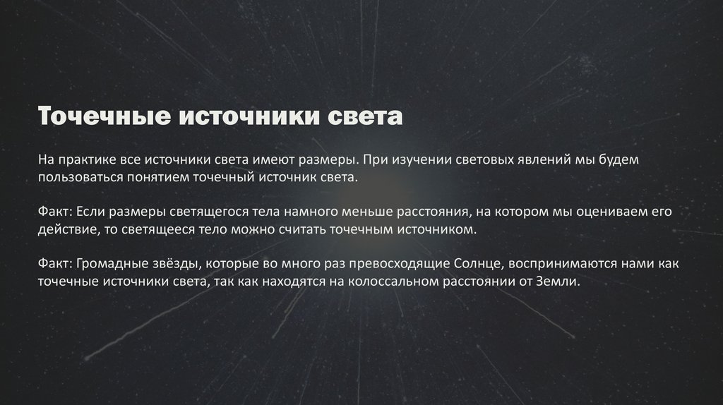 Факт: Если размеры светящегося тела намного меньше расстояния, на котором мы оцениваем его