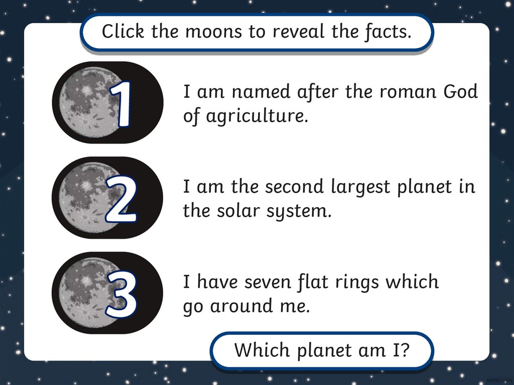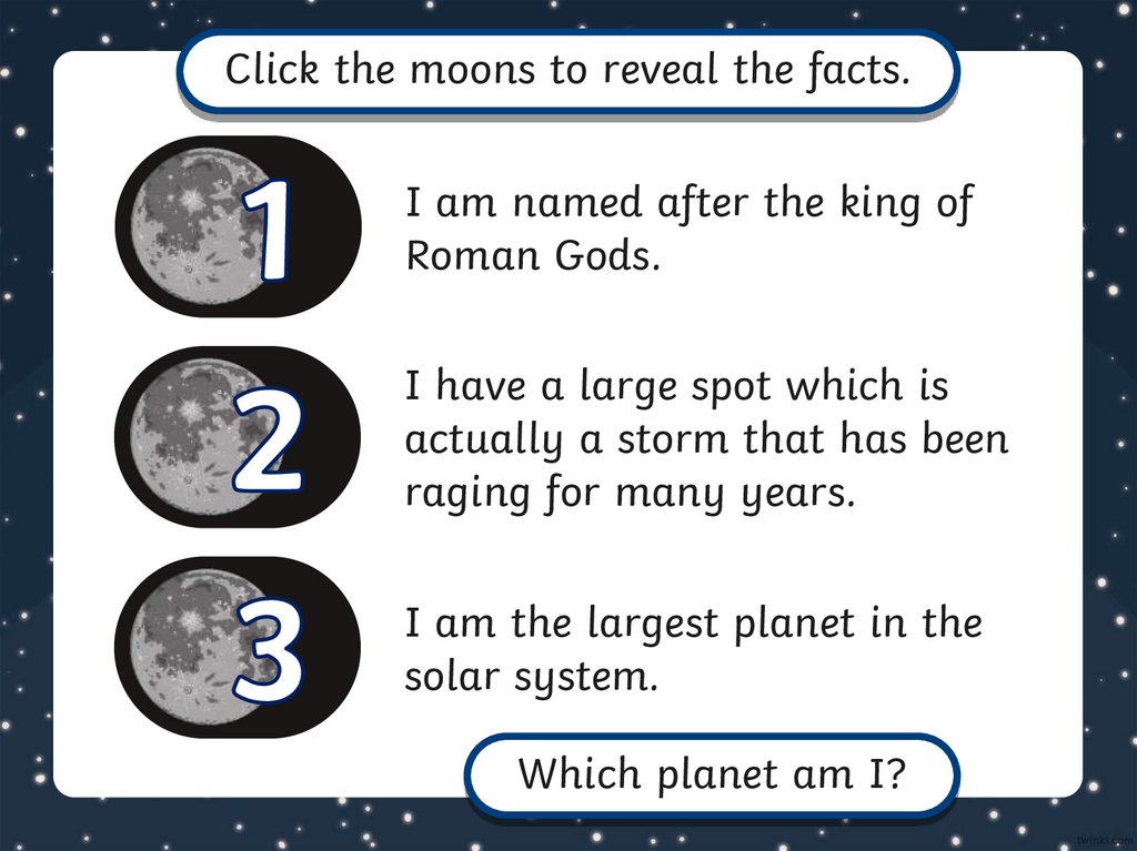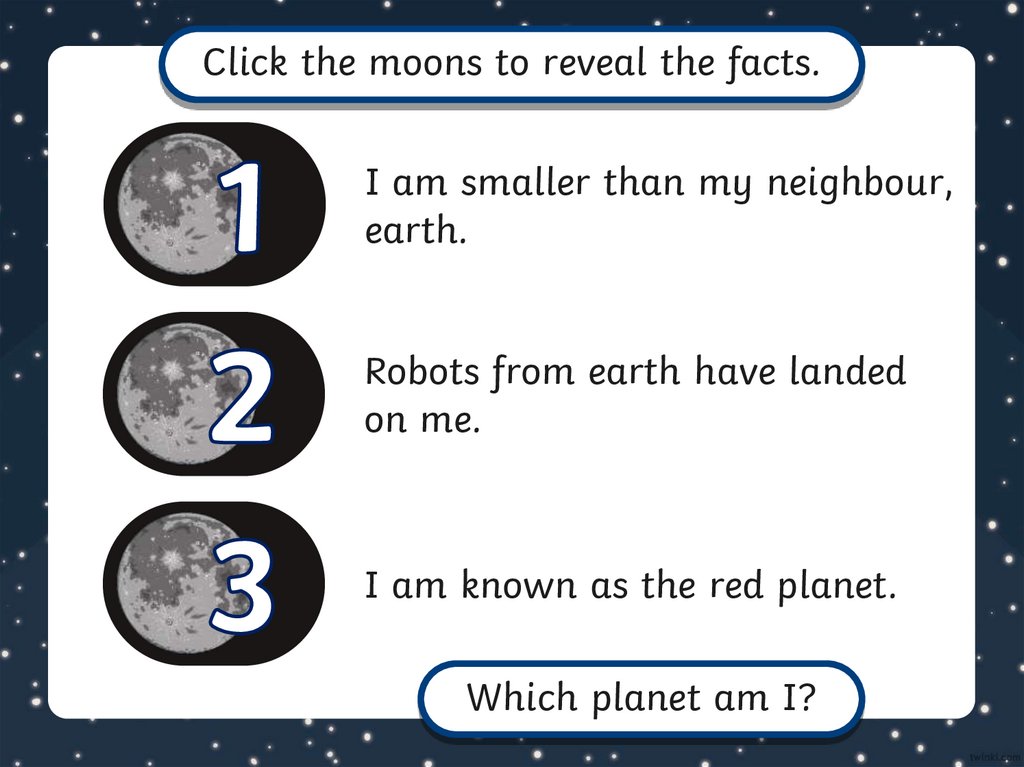 Click the moons to reveal the facts.I am smaller than my neighbour,