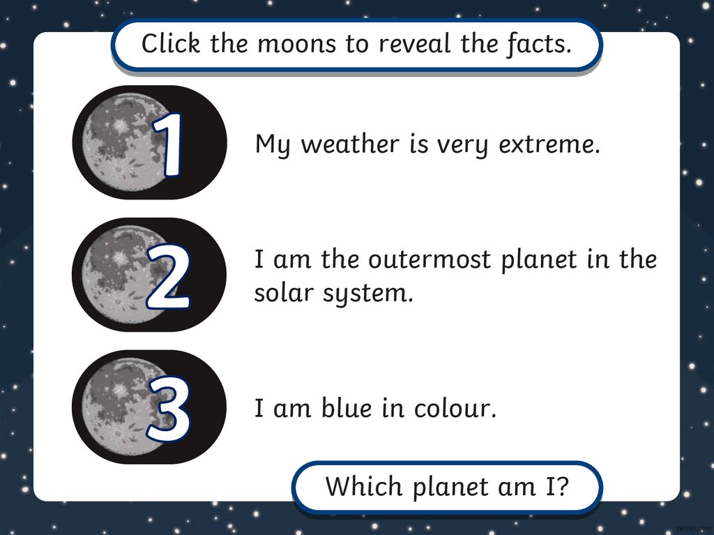Click the moons to reveal the facts.My weather is very extreme.