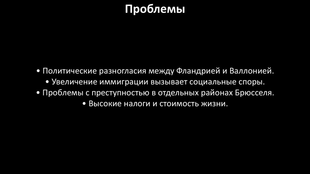 Проблемы• Политические разногласия между Фландрией и Валлонией.