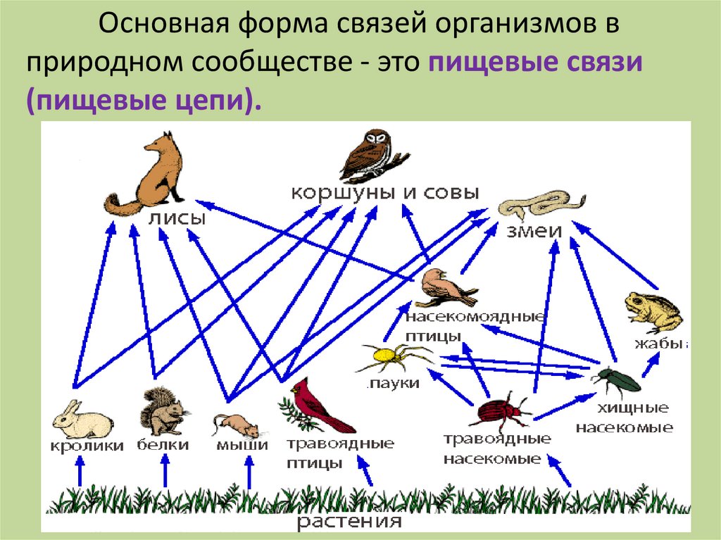 Основная форма связей организмов вприродном сообществе - это пищевые связи
