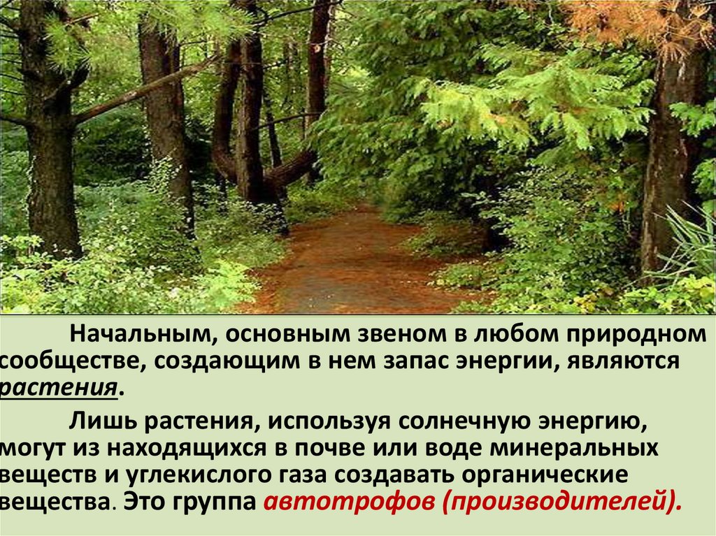Начальным, основным звеном в любом природномсообществе, создающим в нем запас энергии, являются