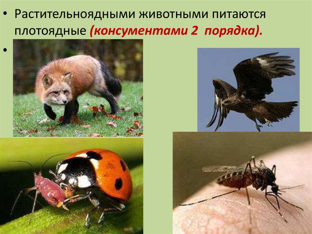 • Растительноядными животными питаютсяплотоядные (консументами 2 порядка).