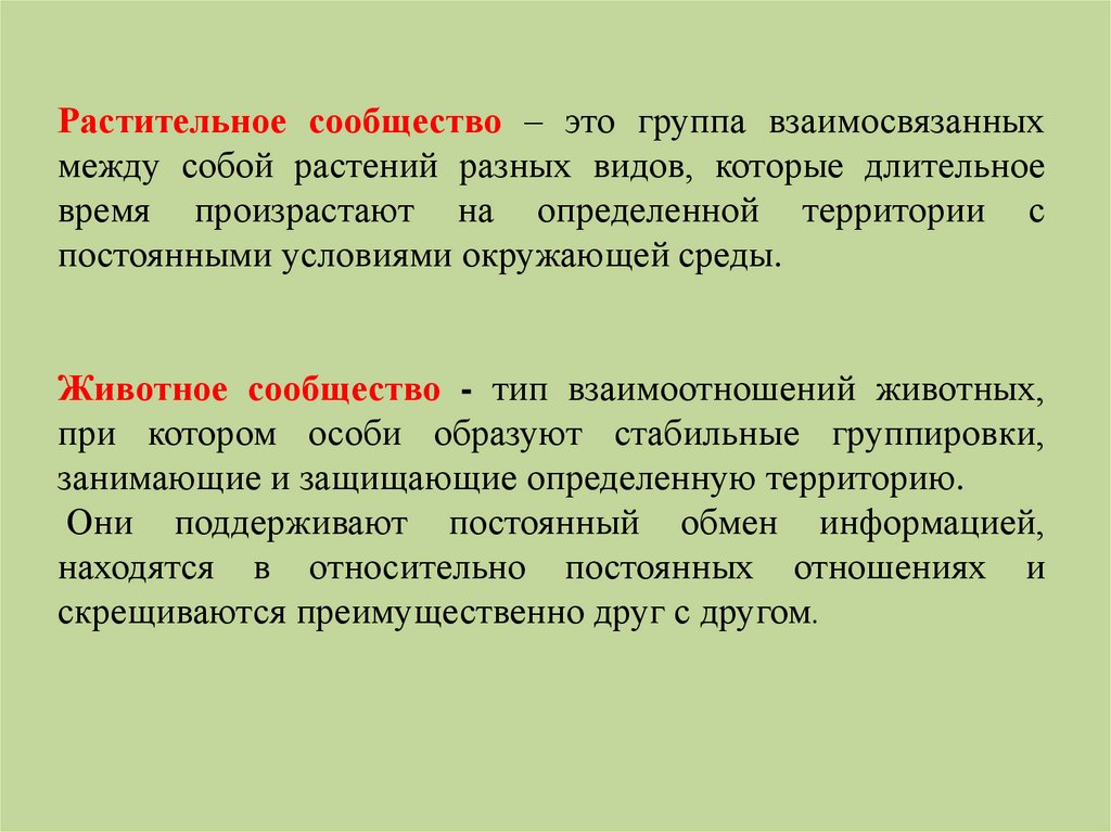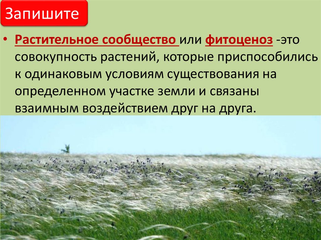 Растительное сообщество – это группа взаимосвязанныхмежду собой растений разных видов, которые длительное