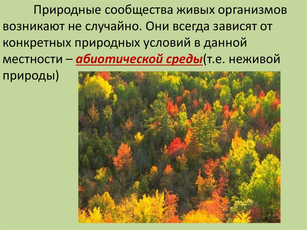 Природные сообщества живых организмоввозникают не случайно. Они всегда зависят от