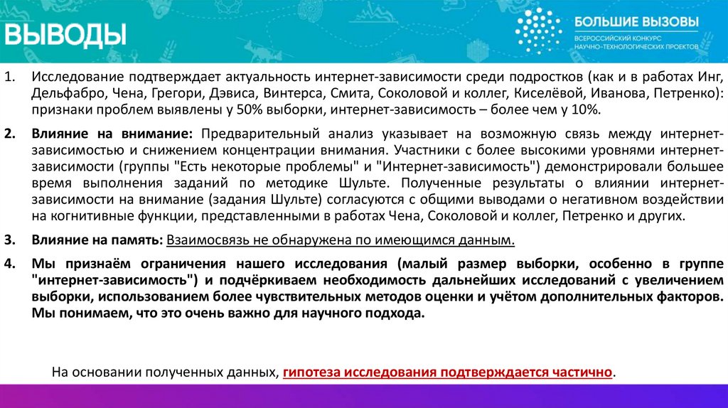 "интернет-зависимость") и подчёркиваем необходимость дальнейших исследований с увеличением