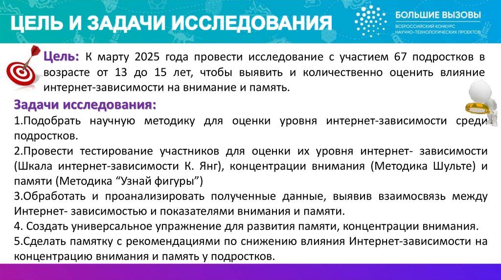 Влияние интернет-зависимости на внимание и память у подростков. Цель и задачи исследования