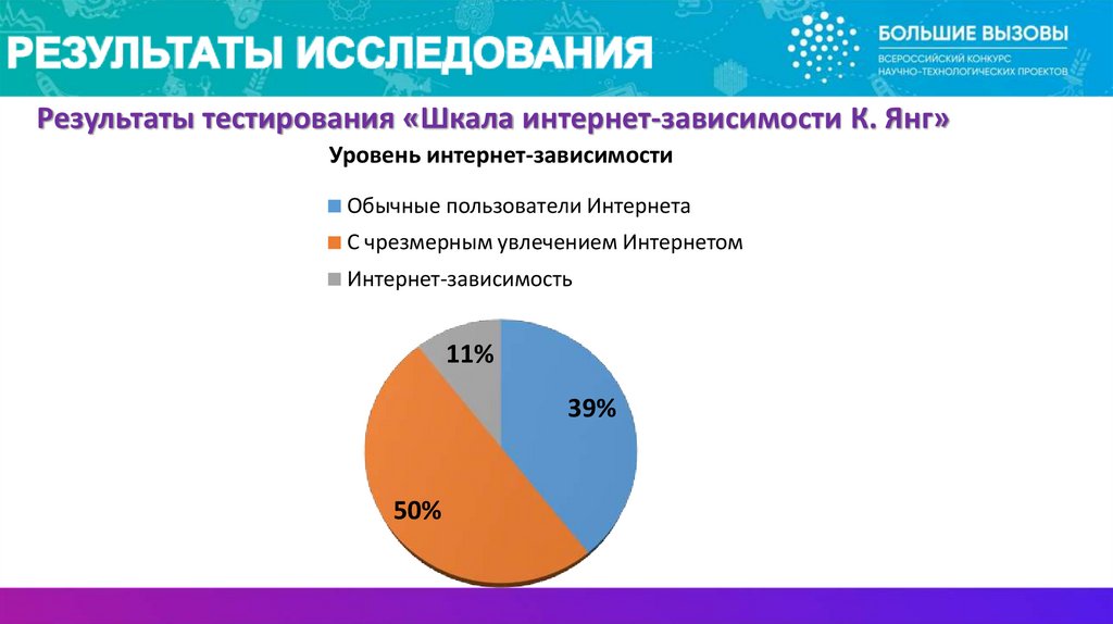 Результаты тестирования «Шкала интернет-зависимости К. Янг»Уровень интернет-зависимости