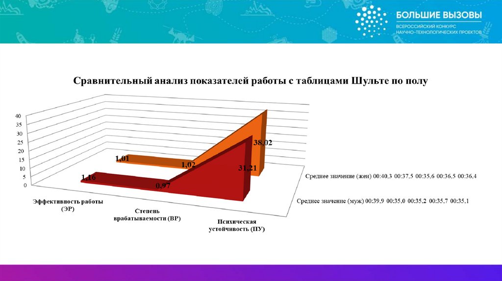 Анализируемые параметры: эффективность работы (ЭР), степень