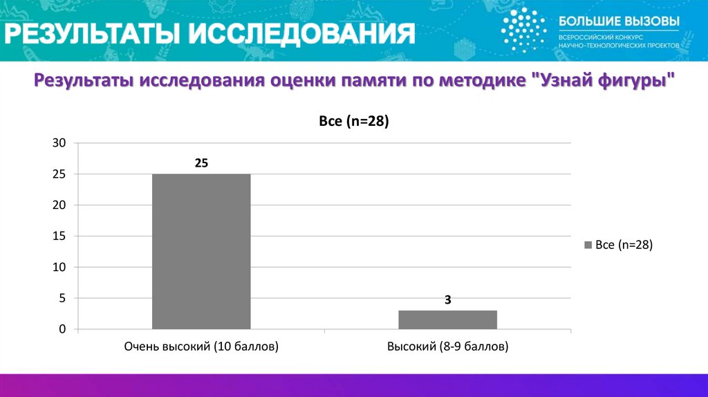 Результаты исследования оценки памяти по методике "Узнай фигуры"Все (n=28)