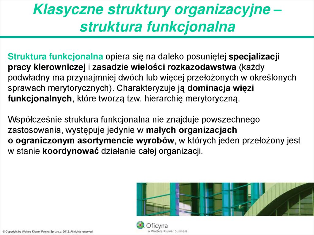 i funkcjonalnej. Opiera się ona na jedności rozkazodawstwa,