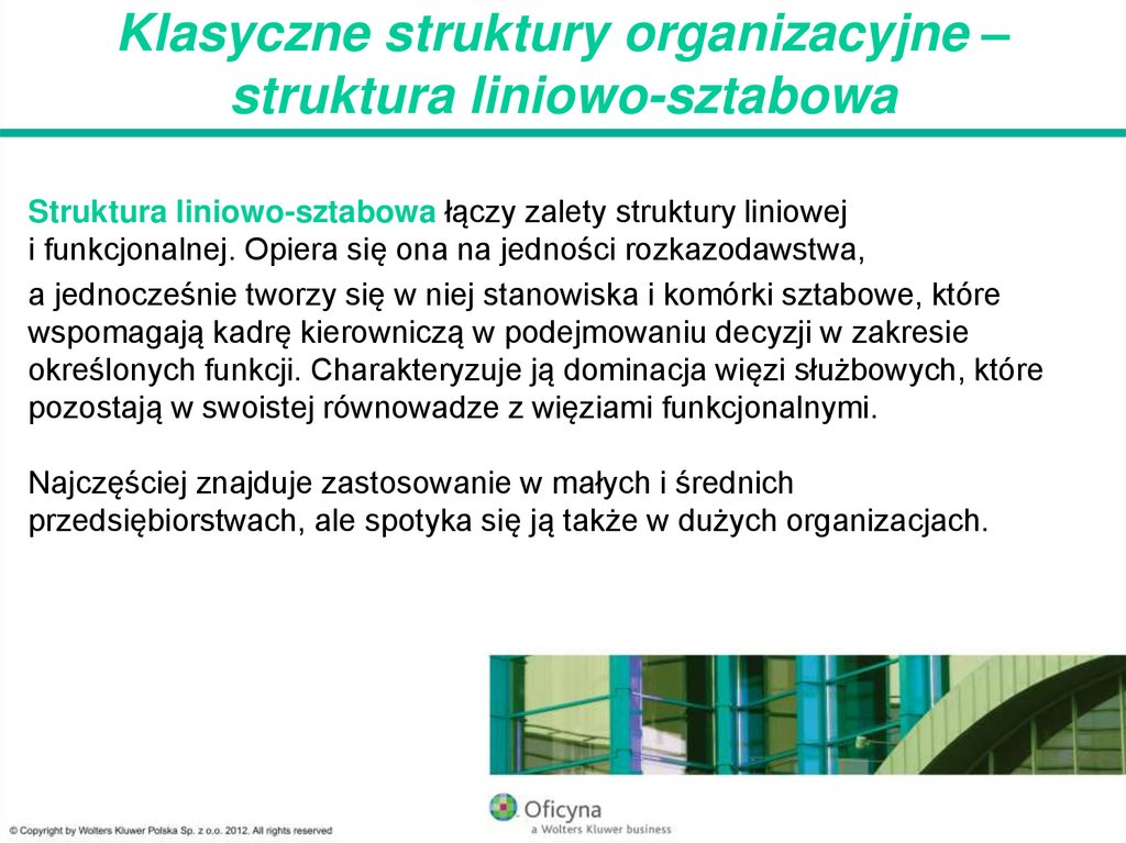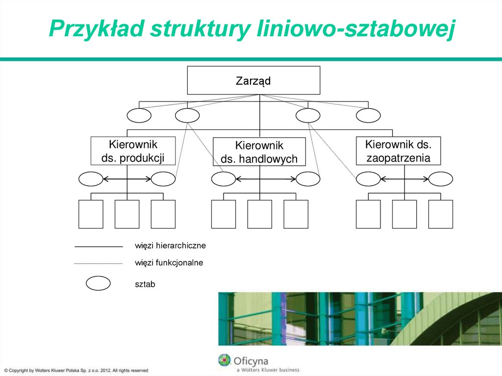 struktur liniowo-sztabowych (np. zaopatrzenie, produkcja, marketing, kadry itp.), oraz