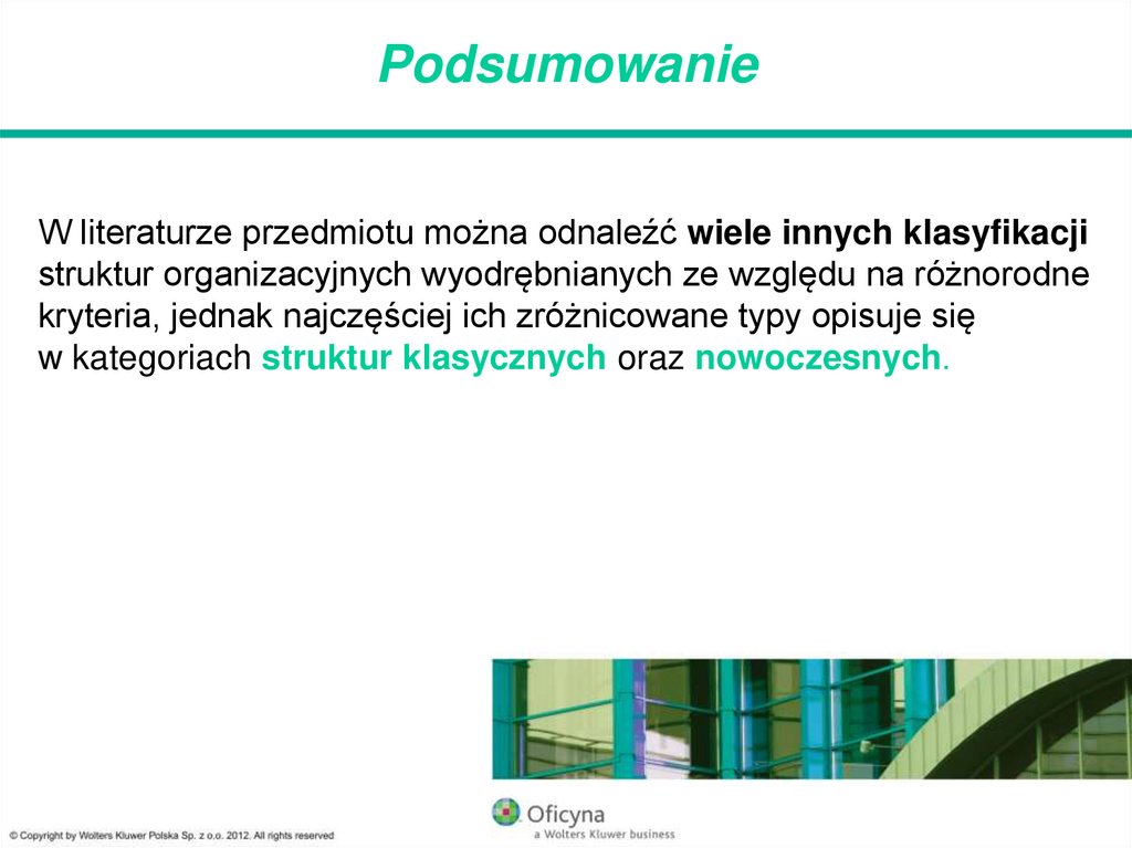 PodsumowanieW literaturze przedmiotu można odnaleźć wiele innych klasyfikacji