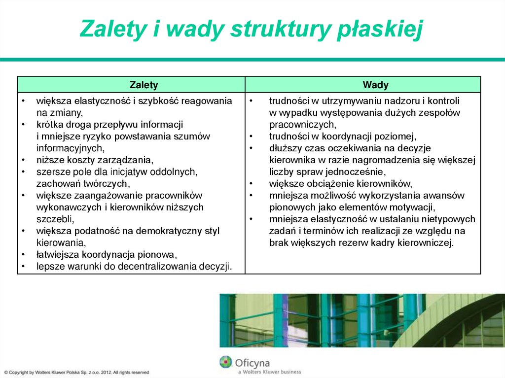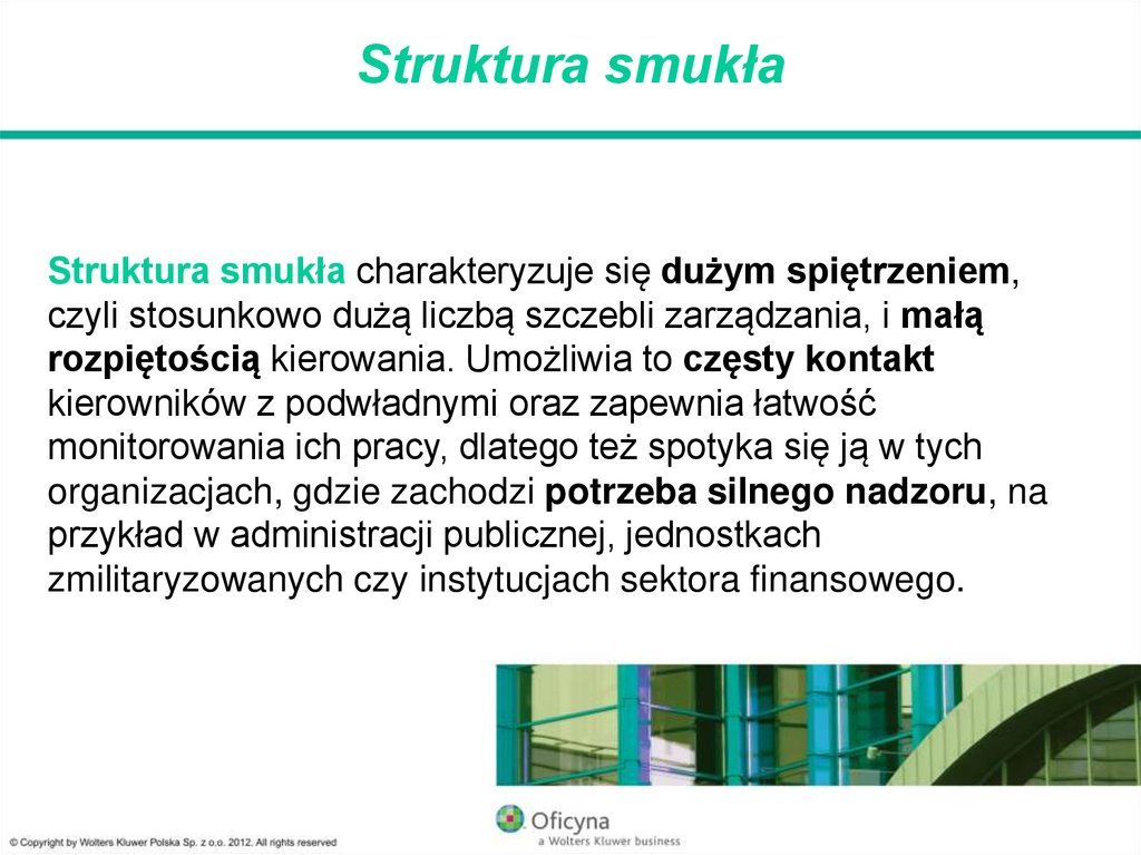 zarządzania i duża rozpiętość kierowania. Zapewnia ona