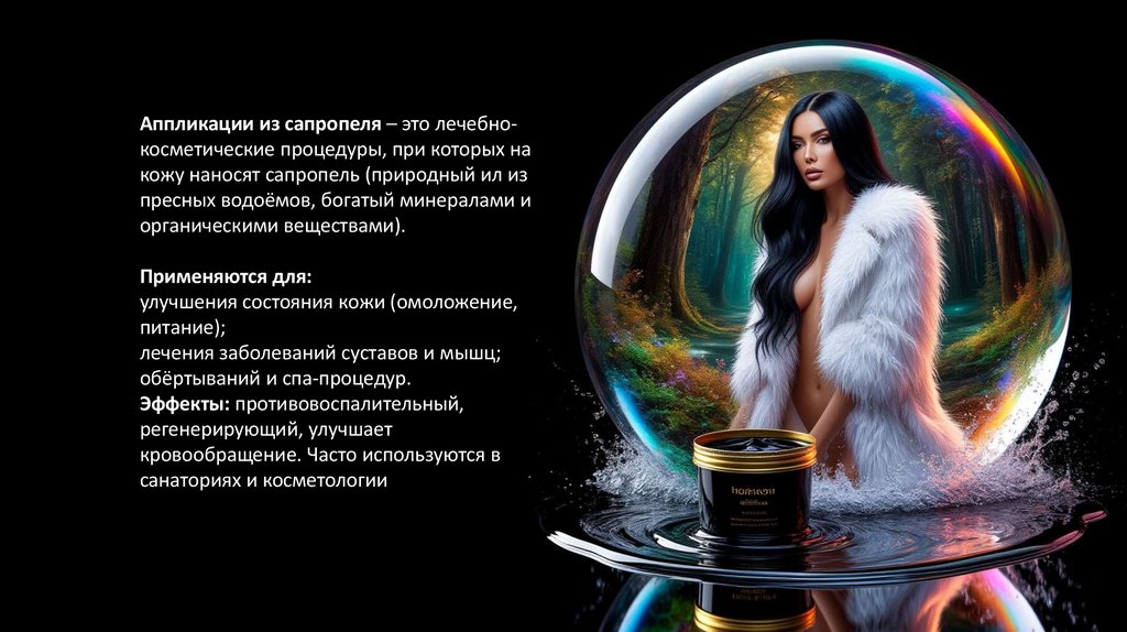 Аппликации из сапропеля – это лечебнокосметические процедуры, при которых накожу наносят сапропель (природный ил из