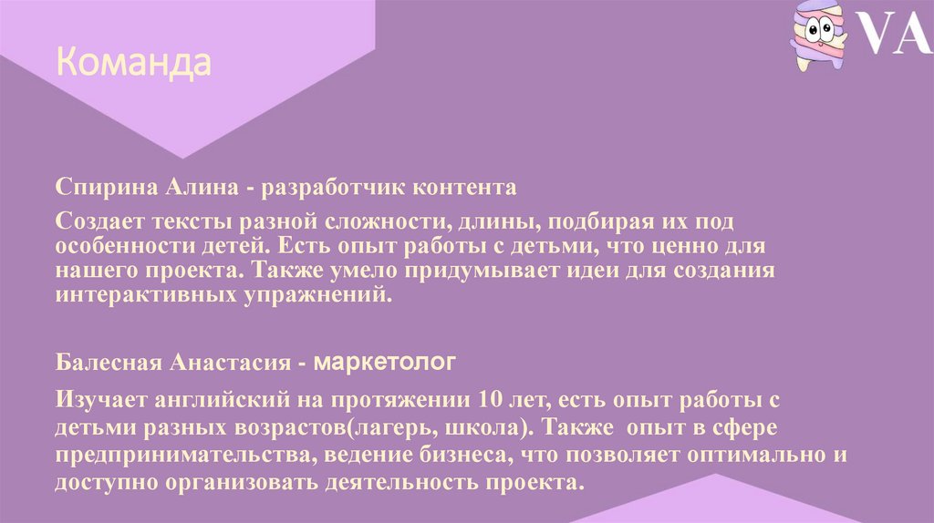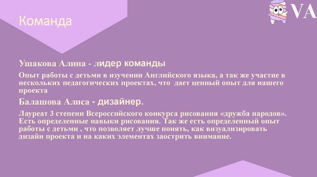 Ушакова Алина - лидер командыОпыт работы с детьми в изучении Английского языка, а так же участие в
