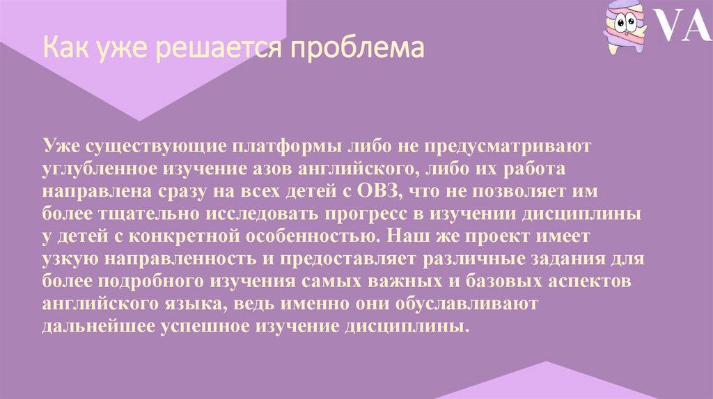 Уже существующие платформы либо не предусматриваютуглубленное изучение азов английского, либо их работа