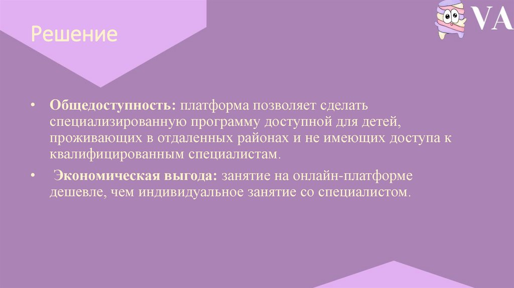 • Общедоступность: платформа позволяет сделатьспециализированную программу доступной для детей,
