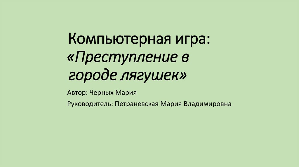 1. Компьютерная игра: «Преступление в городе лягушек»