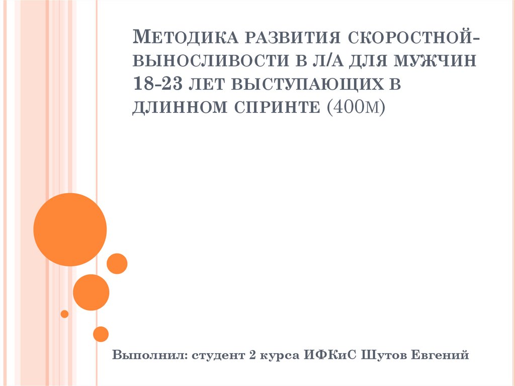 МЕТОДИКА РАЗВИТИЯ СКОРОСТНОЙВЫНОСЛИВОСТИ В Л/А ДЛЯ МУЖЧИН18-23 ЛЕТ ВЫСТУПАЮЩИХ В