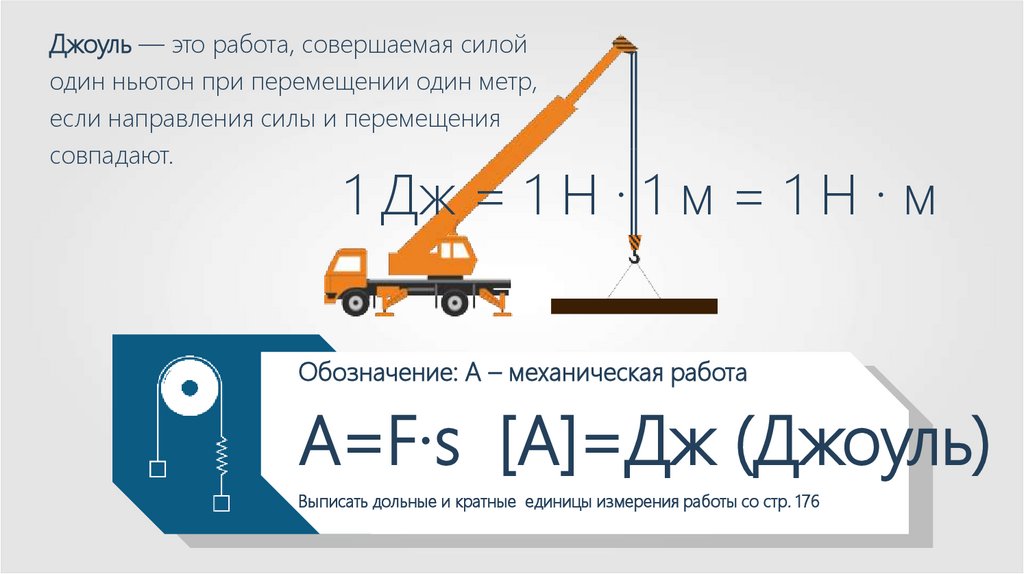 Джоуль — это работа, совершаемая силойодин ньютон при перемещении один метр,