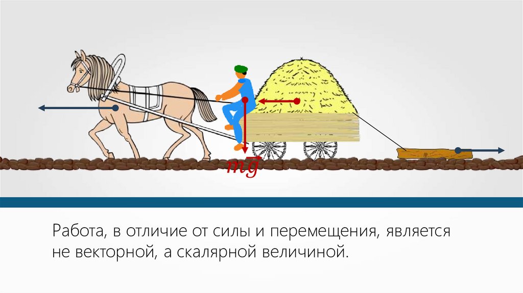 Работа, в отличие от силы и перемещения, являетсяне векторной, а скалярной величиной.
