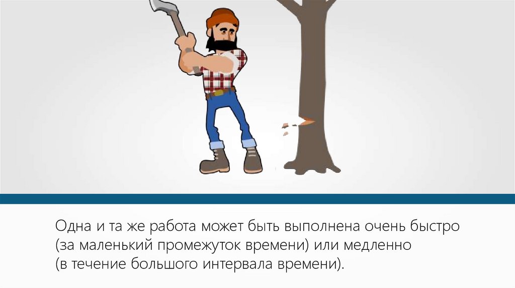 Одна и та же работа может быть выполнена очень быстро(за маленький промежуток времени) или медленно