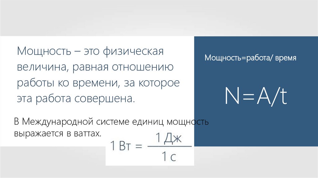 Мощность — это физическая величина,характеризующая скорость, с которой
