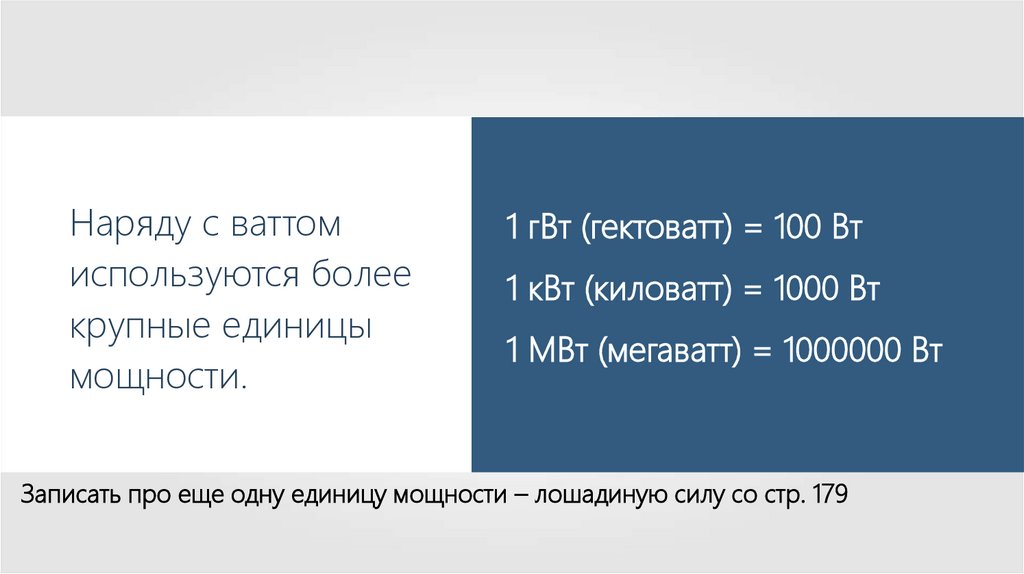 Записать про еще одну единицу мощности – лошадиную силу со стр. 179