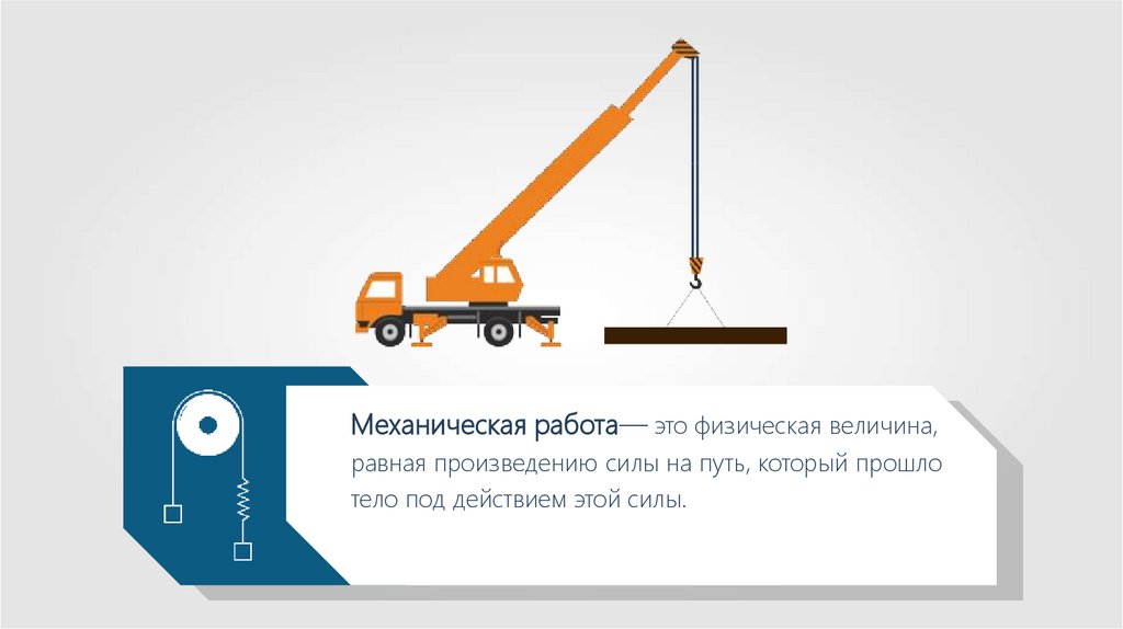 Механическая работа— это физическая величина,равная произведению силы на путь, который прошло