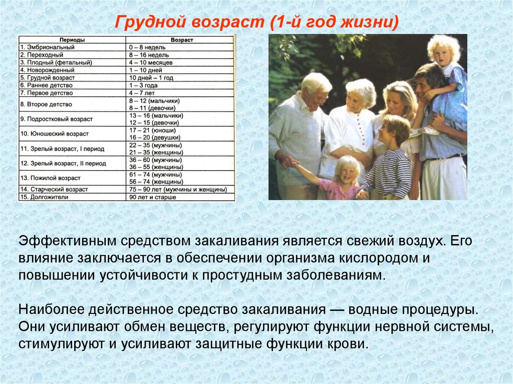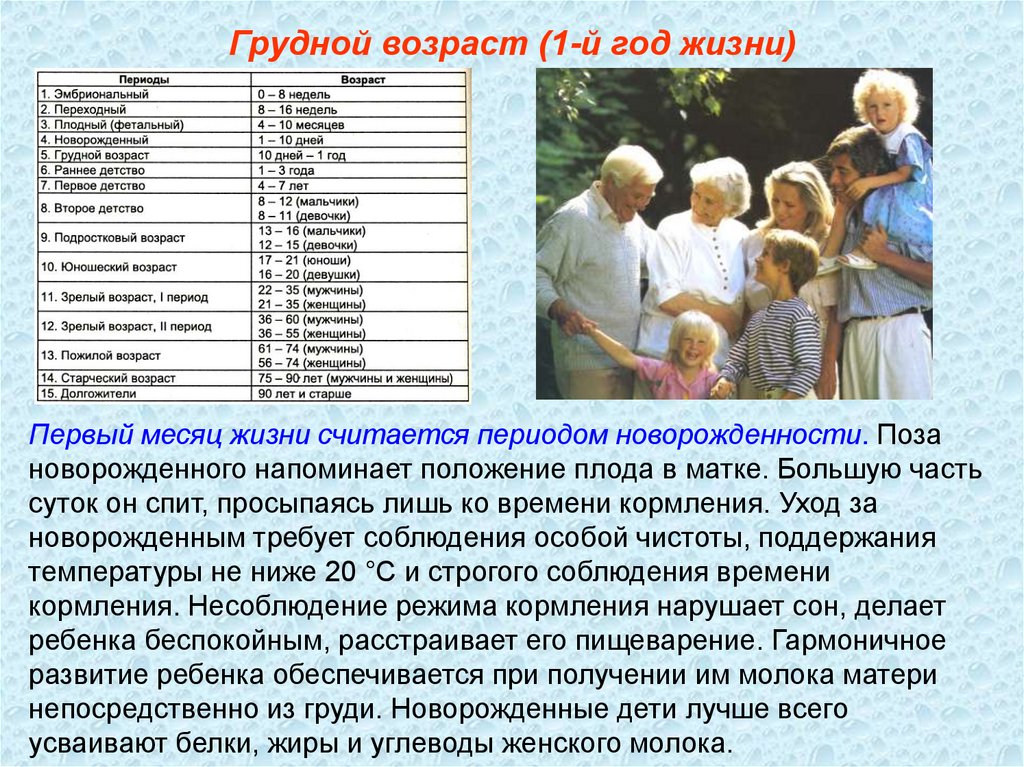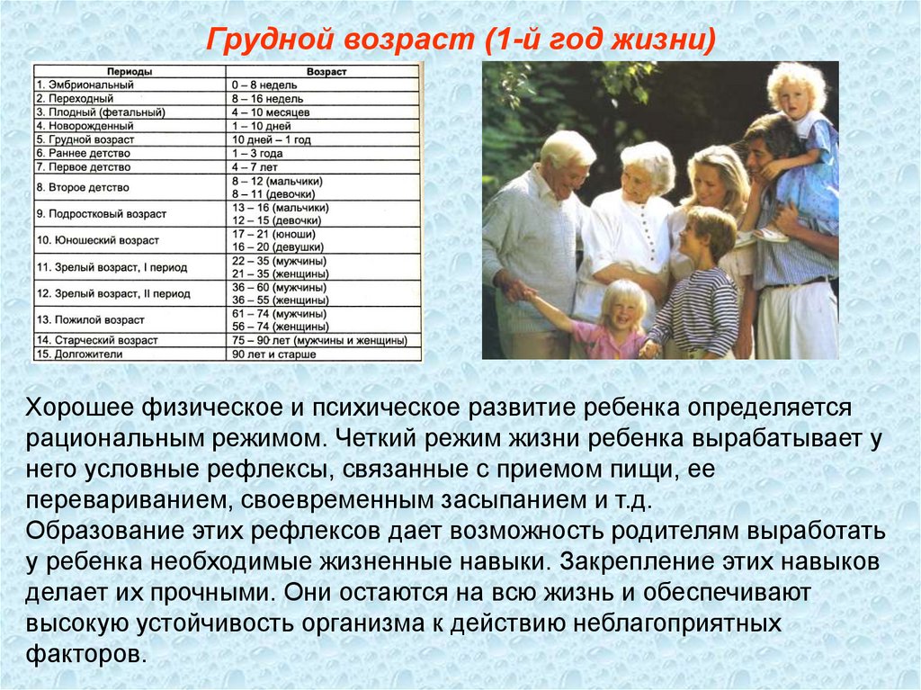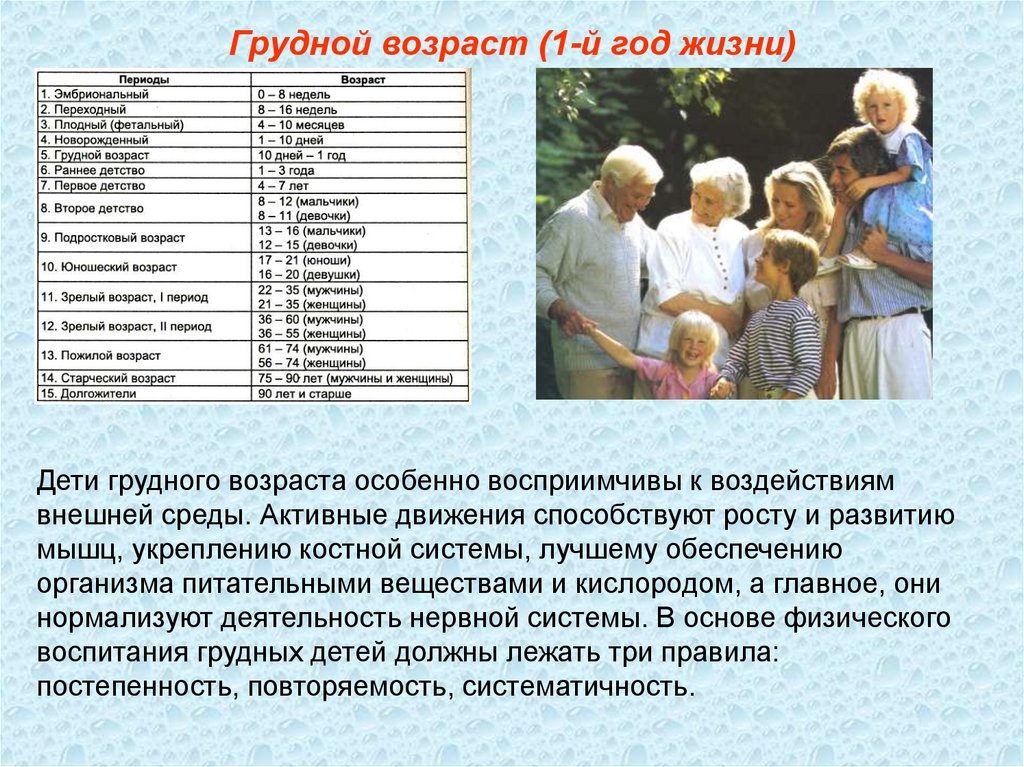 Грудной возраст (1-й год жизни)Дети грудного возраста особенно восприимчивы к воздействиям