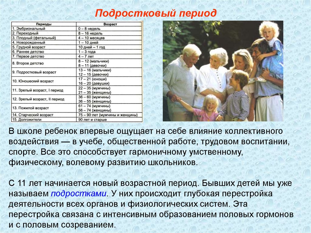 Дать характеристику основным периодам жизни