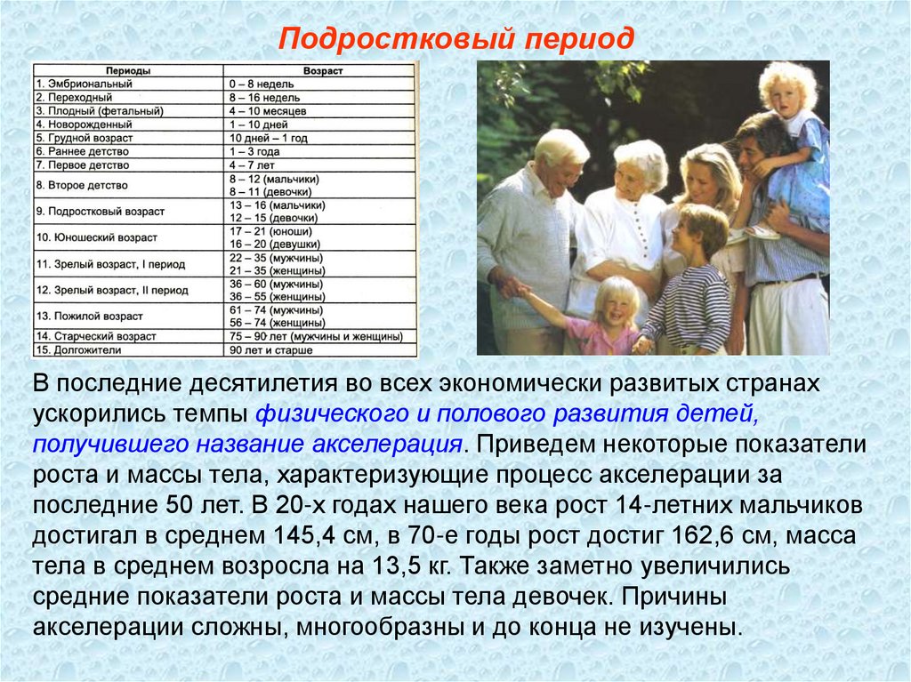 Подростковый периодВ последние десятилетия во всех экономически развитых странах