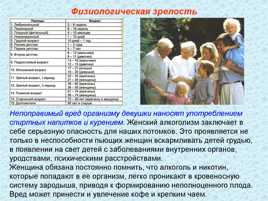 Физиологическая зрелостьНепоправимый вред организму девушки наносят употреблением