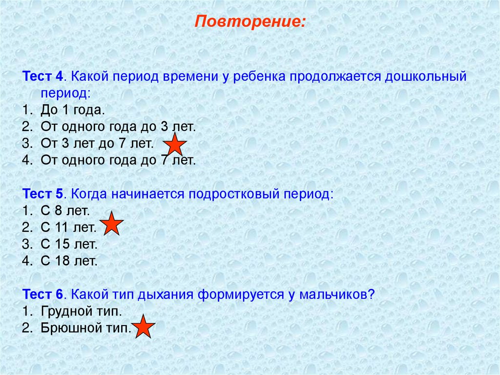 Повторение:Тест 4. Какой период времени у ребенка продолжается дошкольный