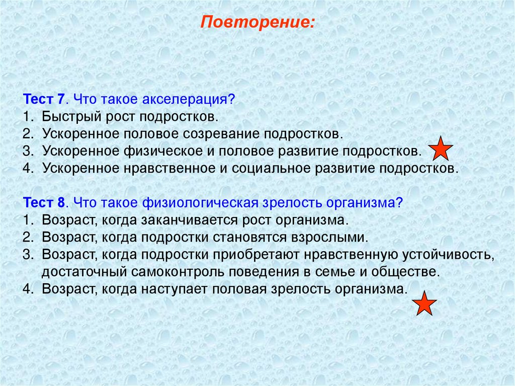 Повторение:Тест 7. Что такое акселерация?